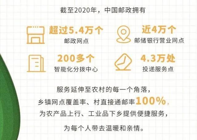 据中国邮政12月29日发布的最新数据显示,截至2020年,中国邮政的邮政网点数量超过5.4万个,邮储银行营业网点近4万个,投递服务点4.3万处。乡镇网点覆盖率和乡村直接通邮率为100%。值得一提的是,截至2020年9月底,邮储银行服务的个人客户数量已超6亿户。